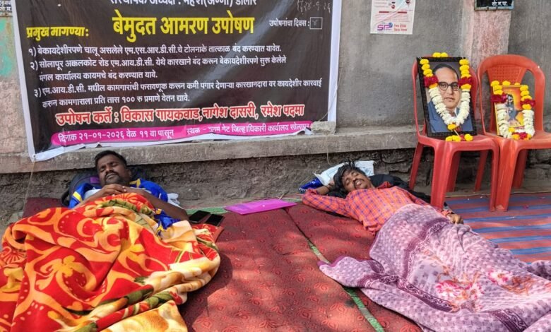 सोलापूर जिल्हाधिकारी कार्यालय समोर युवा भीमसेनेचे विविध मागण्यासाठी आमरण उपोषण सुरू