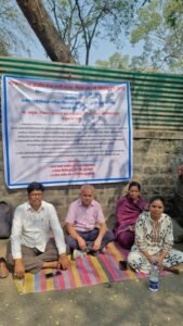 पुणे येथील दिव्यांग कार्यालय समोर थकीत वेतन व इतर कामासाठी आमरण उपोषण करत असलेले डझनभर कर्मचारी. यावेळी चक्रधर पाटील, सुलभा एकलारे, सारगा पावरा , विशाल शेंद्रे, सागर शेंद्रे, तेजकुमार माने, संतोष बालशंकर रुक्मिणी होटकर, स्वाती मंडलिक , बबन भंडारे शिरीष जाधव अर्चना पाटील आदि