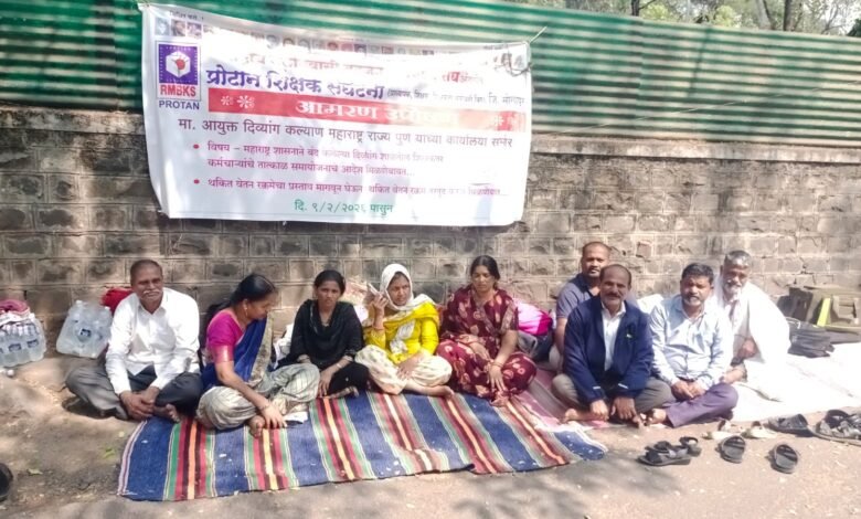 कर्मचाऱ्यांच्या थकीत वेतना साठी प्रोटॉन शिक्षक संघटनेचे दिव्यांग आयुक्तालय , पुणे यांचेसमोर आमरण उपोषण